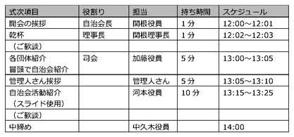 自治会運営会議の議事メモです